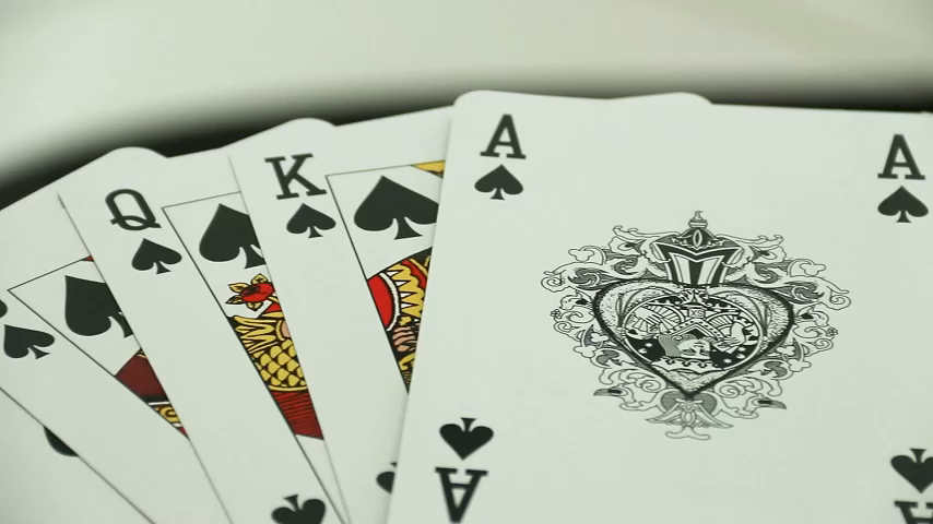 The magician displays five randomly scattered cards, then simply snaps their fingers—when the cards are spread again, they’ve transformed into a straight flush!