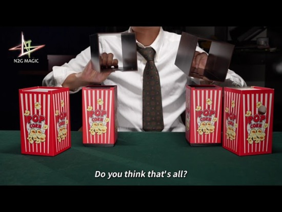 A soft drink and a box full of popcorn are covered by two identical cylinders. The magician switches the places of the soft drink and the popcorn box with a magic move. These changes continue for as long as the magician wants, Then the magician starts to make more popcorn boxes appear and these moves and increments continue until your table is magically full of popcorn.. The boxes are completely full of popcorn and you can display them completely and even eat from it. Pop More is a very attractive and potential product for performances where you want to spend more time with the audience, this product is suitable for stage performances, events, parties, children, etc.