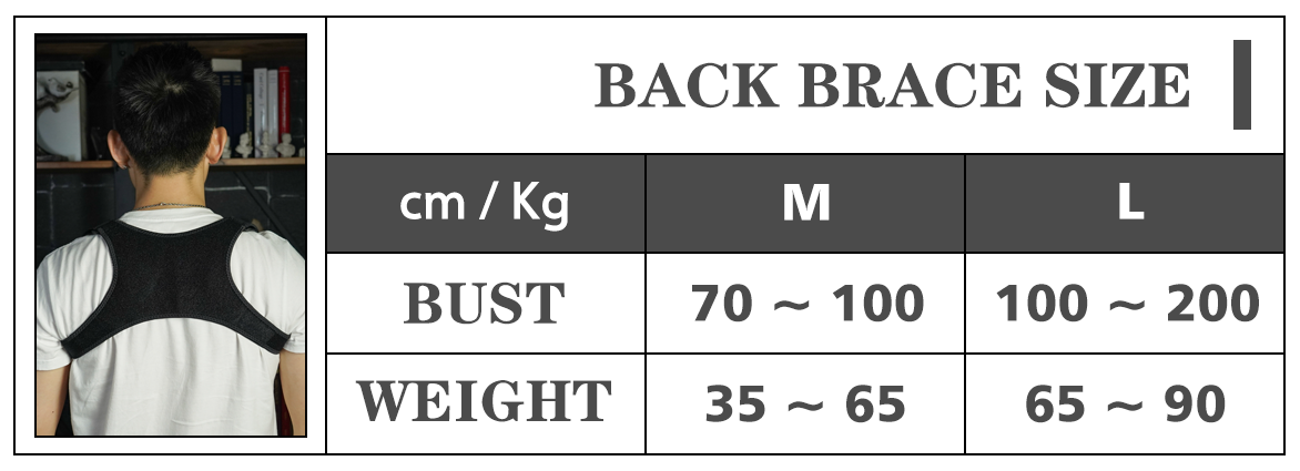 Model Height 177cm; Weight 72kg; Chest circumference 98cm; Back Brace Size L